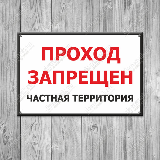 Табличка «Проход запрещен, частная территория» изготавливается на основе из пластика ПВХ или оцинкованного металла.