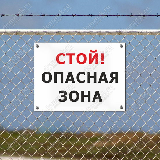 Табличка «Стой, опасная зона» изготавливается на основе из пластика ПВХ или оцинкованного металла.