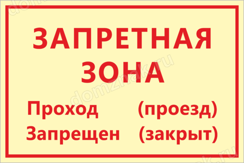 Если на территории имеется запретная для прохода или проезда зона, об этом лучше предупреждать заранее. Предлагаем вам купить табличку с надписью «Запретная зона», которая может быть выбрана по вашему усмотрению.