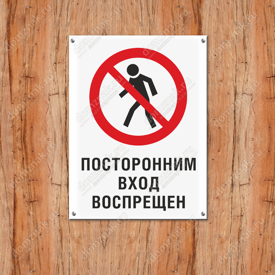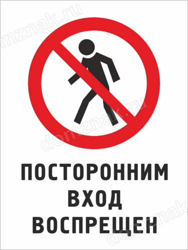 Простая по форме и содержанию табличка, которая информирует о невозможности прохода посторонним лицам. Установите знак «Посторонним вход воспрещен» на служебном входе или в ином месте, куда имеют допуск только сотрудники вашей фирмы или работники предприятия.