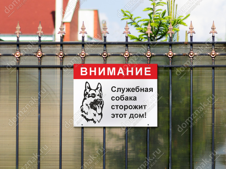 Специально обученная служебная собака представляет немалую опасность для желающих несанкционированно проникнуть на вашу территорию. Предупредите мелких воришек и других асоциальных элементов о том, что дом находится под охраной «специалиста» – табличка «Служебная собака сторожит этот дом» остановит многих.