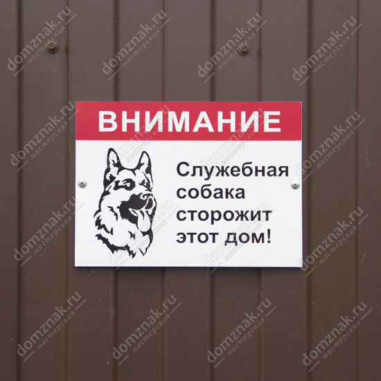 Табличка «Служебная собака сторожит этот дом» изготавливается на основе из пластика ПВХ или оцинкованного металла.