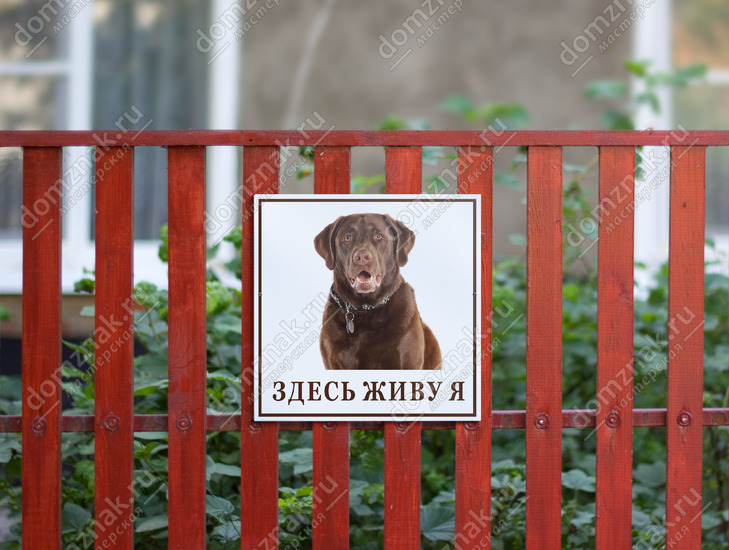 Для тех, кто предпочитает не угрожать, а предупреждать, кто действует мягкими, но эффективными методами, мы разработали оригинальную табличку – «Осторожно, в доме собака». Изображение симпатичного пса и информационный текст «Здесь живу я» вежливо предупреждают о наличии в доме собаки, но при этом последствия несанкционированного проникновения абсолютно понятны.