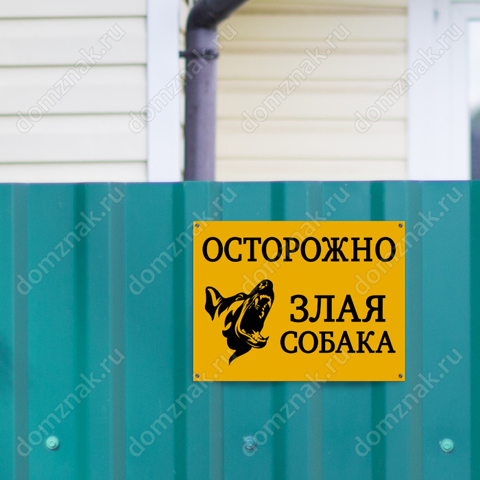 Предпочитаете текстовые таблички? Они тоже могут быть яркими и привлекающими внимание – главное, правильно выбрать цветовую гамму и шрифт. Ярко-оранжевый фон, крупная надпись – знак «Осторожно, злая собака» доносит информацию емко и настойчиво.