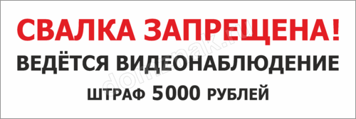 Стихийные мусорные свалки способны изуродовать самую удобную и ухоженную территорию. Табличка «Свалка запрещена» поможет Вам напомнить посетителям о правилах хорошего тона и предупредить о ведущемся видеонаблюдении.