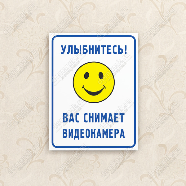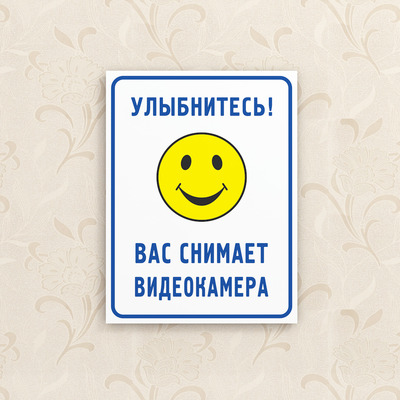 Табличка «Улыбнитесь вас снимает видеокамера» изготавливается на основе из пластика ПВХ или оцинкованного металла.