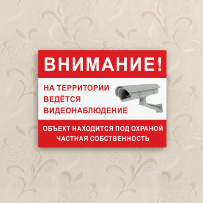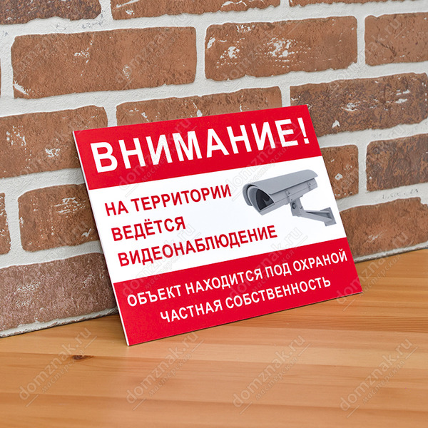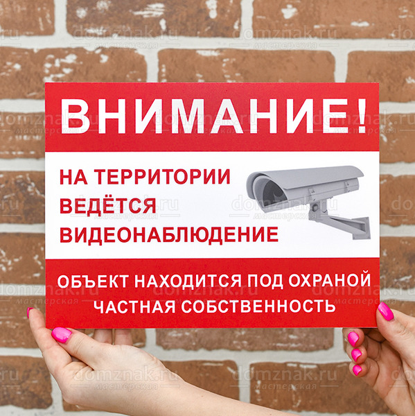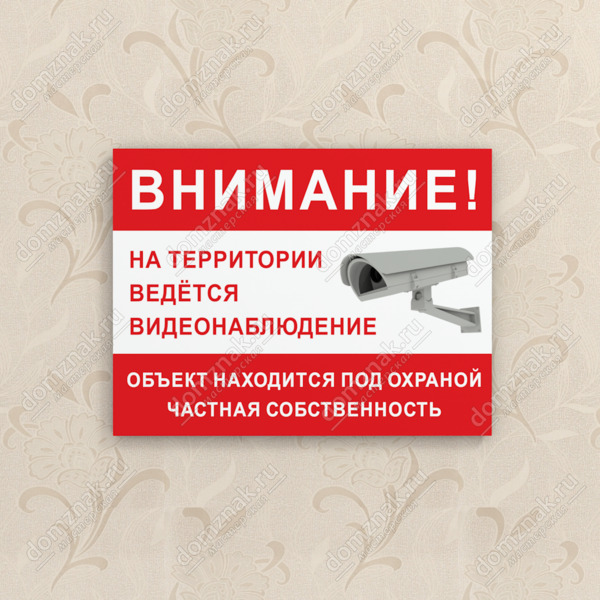 Табличка «Ведётся видеонаблюдение, частная собственность» изготавливается на основе из пластика ПВХ или оцинкованного металла.