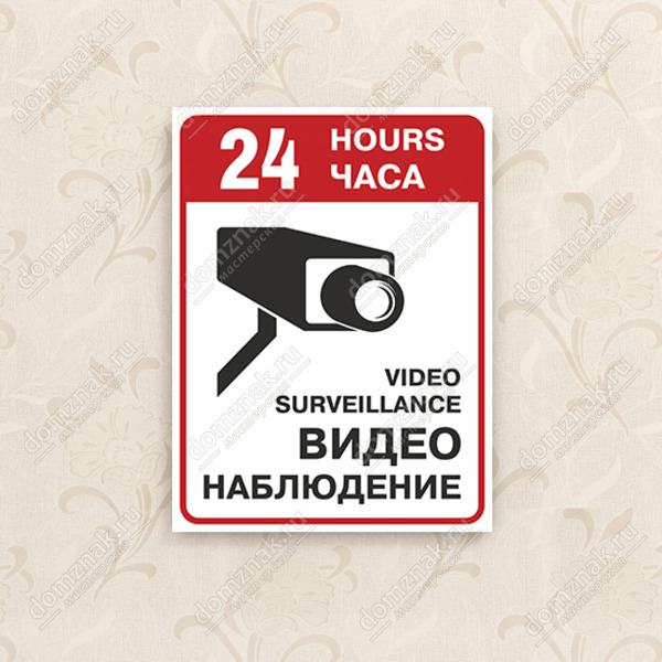 Предупредительный знак «24 часа/hours Video Surveillance/Видео наблюдение» служит не только эффективным устрашением для потенциальных злоумышленников и вандалов, но и неплохим предупреждением для иностранных туристов.