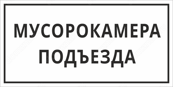 Табличка «Мусорокамера подъезда» изготавливается на основе из пластика ПВХ или оцинкованного металла.