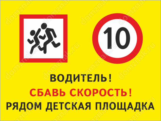 Знак «Водитель! Сбавь скорость» изготавливается на основе из пластика ПВХ или оцинкованного металла.