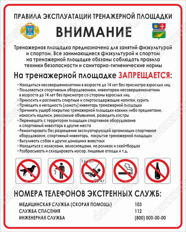 Табличка Правила эксплуатации тренажерной площадки