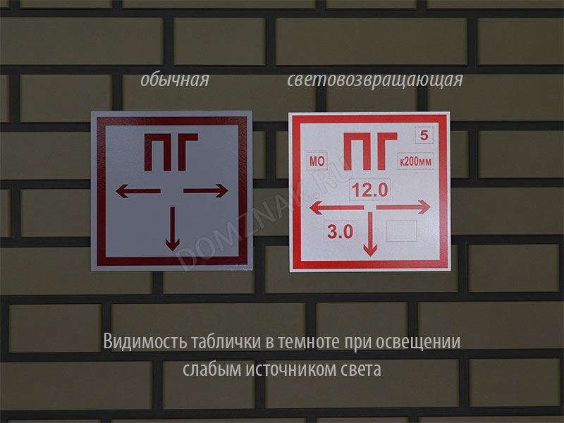 Световозвращающая поверхность знака Таблички со световозвращающей поверхностью зрительно воспринимаются светящимися, при освещении прямым пучком света (например светом от автомобильных фар). (см.фото)