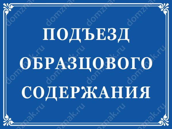 Табличка «Подъезд образцового содержания» изготавливается на основе из пластика ПВХ или оцинкованного металла.