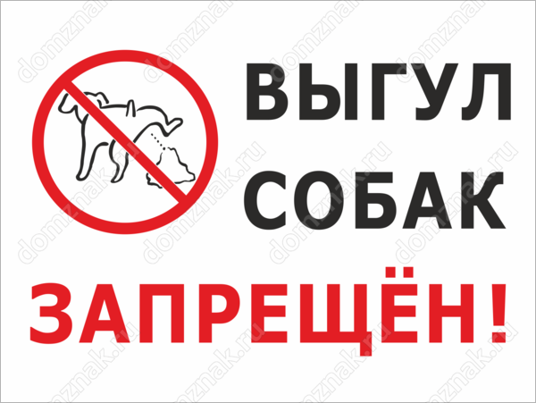 Табличка «Выгул собак запрещён» изготавливается на основе из пластика ПВХ или оцинкованного металла.