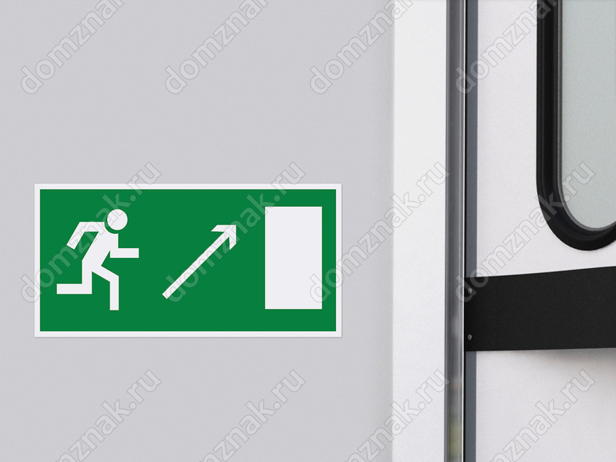 Знак «Направление к эвакуационному выходу направо вверх» изготавливается в нескольких вариантах: