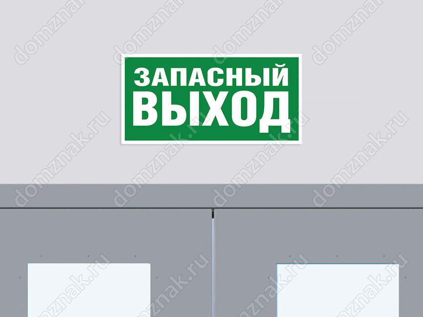 Знак «Указатель запасного выхода» (указатель запасного аварийного выхода, эвакуационный указатель запасного выхода) (код E23) устанавливается над дверями запасного выхода.