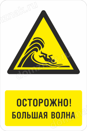Знак «Осторожно, большая волна» изготавливается на основе из пластика ПВХ или оцинкованного металла.