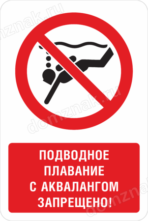 Знак «Подводное плавание с аквалангом запрещено» изготавливается на основе из пластика ПВХ или оцинкованного металла.