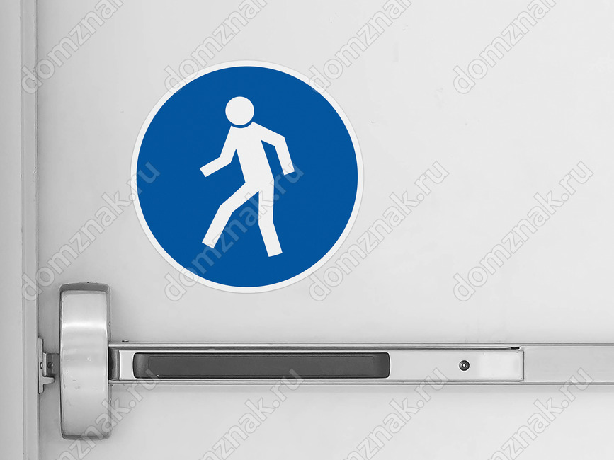 Предписывающий знак безопасности «Проход здесь» (код M10), используется на территориях и участках, где разрешается проход.