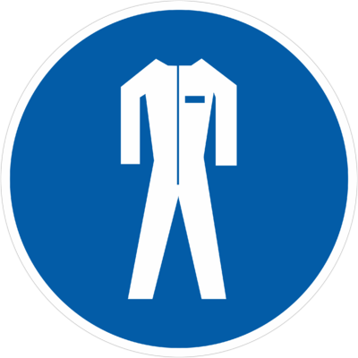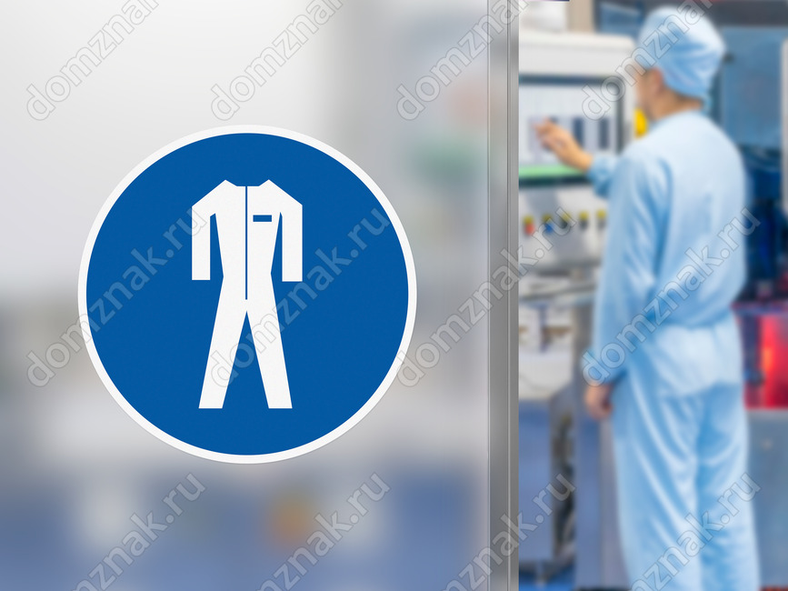 Предписывающий знак безопасности «Работать в защитной одежде» (код M07), используется на рабочих местах и участках, где необходимо применять средства индивидуальной зашиты.