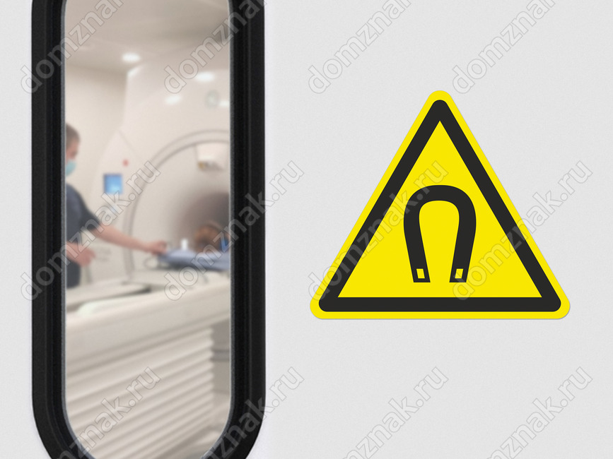 Предупреждающий знак безопасности «Внимание. Магнитное поле» (код W13) устанавливается на дверях помещений, оборудовании, приборах и в других местах, где действуют магнитные поля.