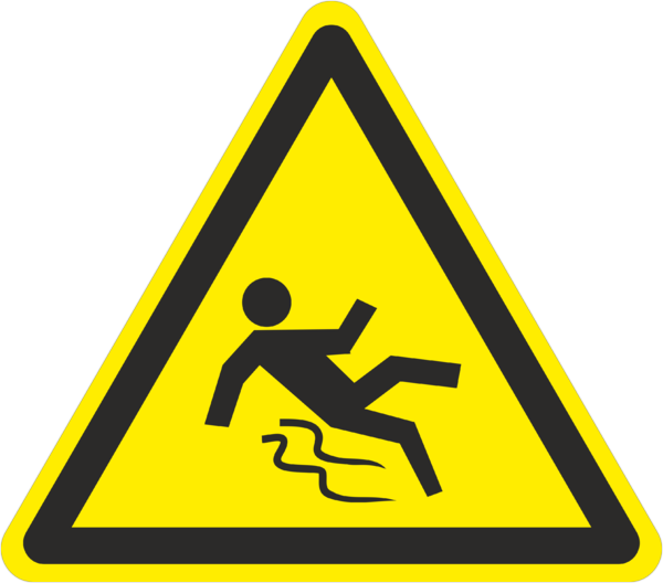 Предупреждающий знак безопасности (табличка, наклейка) «Осторожно. Скользко» (код W28) используется на территории и участках, где имеются скользкие места.