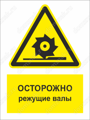 Табличка «Осторожно! Режущие валы» изготавливается в нескольких вариантах: