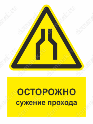 Табличка «Осторожно, сужение прохода» изготавливается в нескольких вариантах: