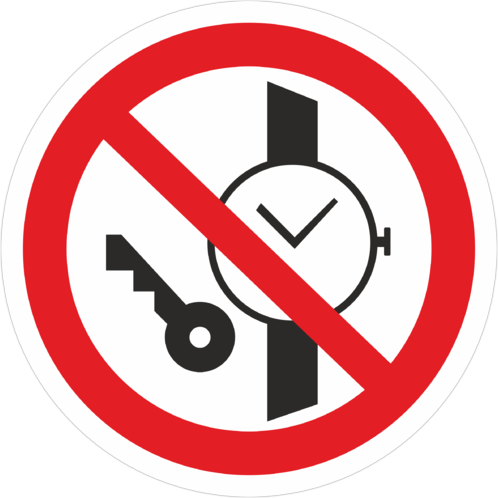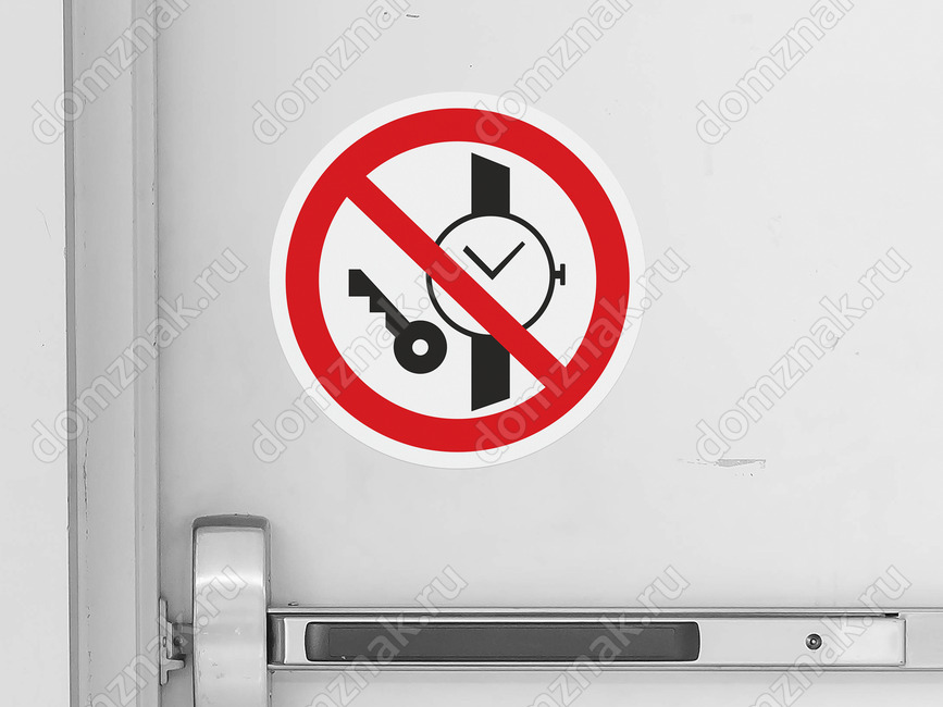 Знак «Запрещается иметь при (на) себе металлические предметы (часы и т.п.)» (код P27) устанавливается при входе на объекты, на рабочих местах, оборудовании, приборах и т.п. Область применения знака может быть расширена.