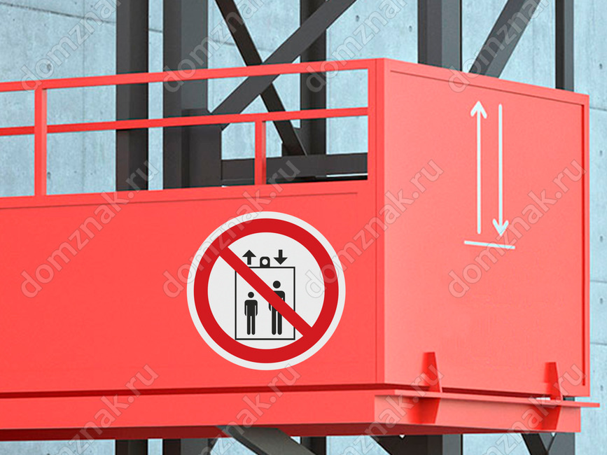 Знак «Запрещается пользоваться лифтом для подъема (спуска) людей» (код P34) размещается на дверях грузовых лифтов и других подъемных механизмах. Знак входит в состав группового знака безопасности «При пожаре лифтом не пользоваться, выходить по лестнице».