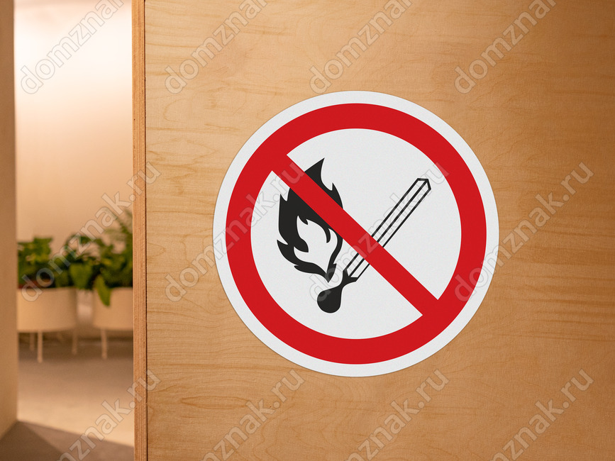 Знак «Запрещается пользоваться открытым огнем» изготавливается в нескольких вариантах: