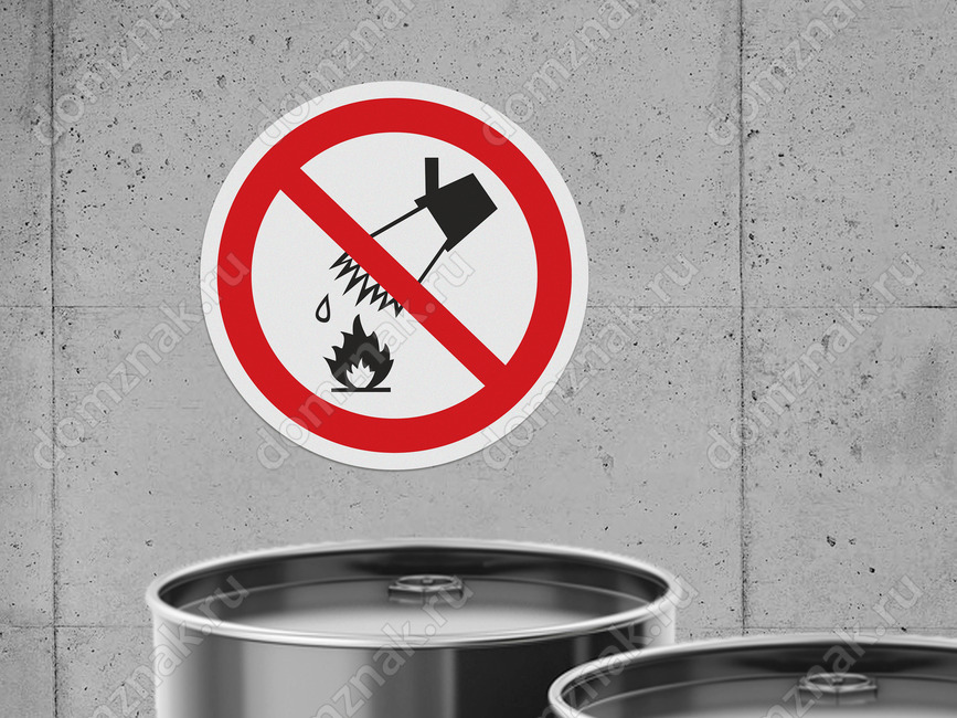 Знак «Запрещается тушить водой» изготавливается в нескольких вариантах: