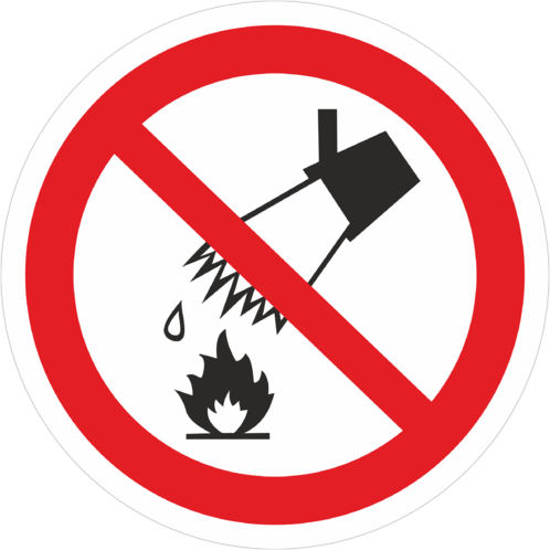 Знак «Запрещается тушить водой» (код P04) устанавливается в местах расположения электрооборудования, складах и других местах, где нельзя применять воду при тушении горения или пожара. (